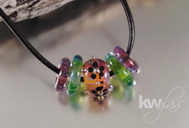 All of my beads go directly from flame to kiln. They are properly annealed in a digitally controlled kiln for strength and durability. Then each one is cleaned and inspected to be enjoyed for a long and happy life.